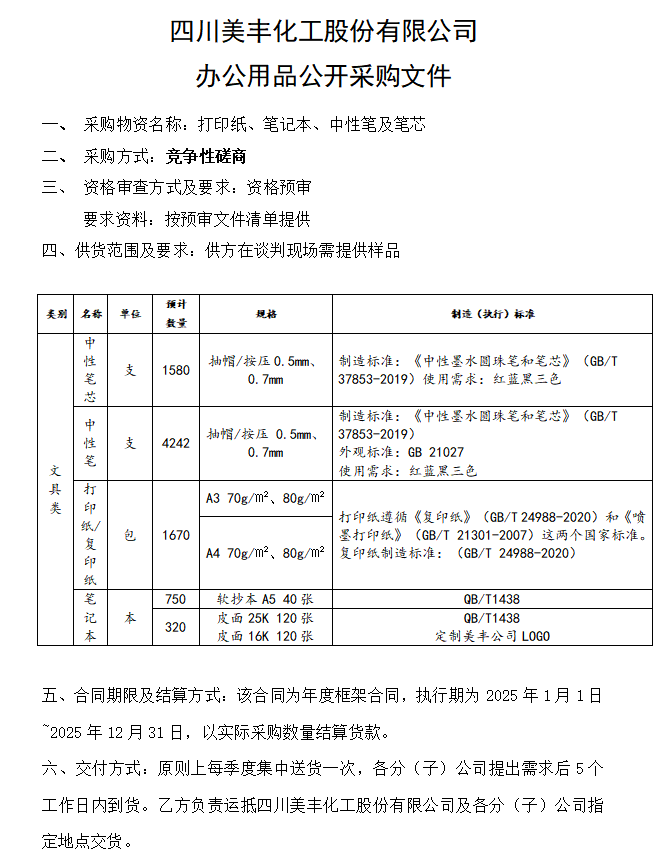 办公用品采购(2025年度)