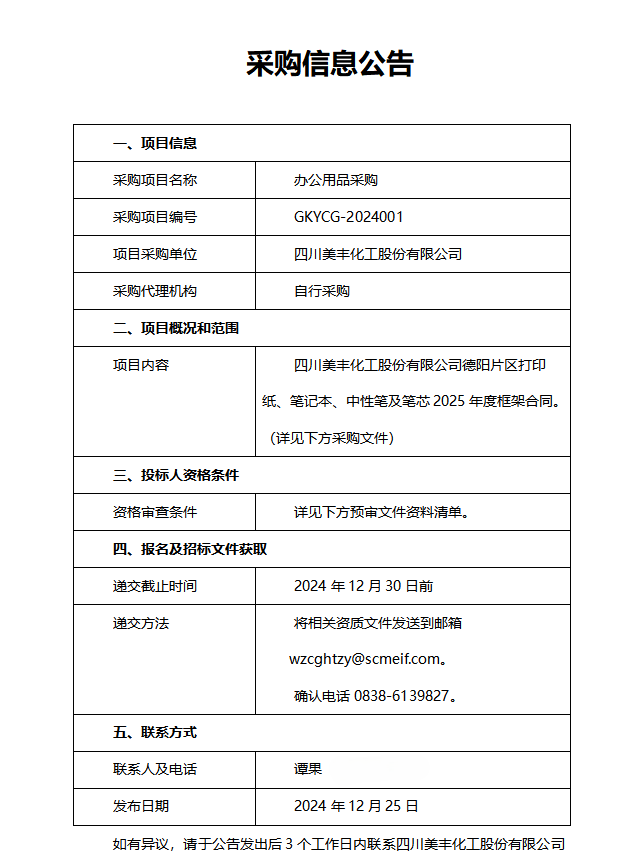 物资采购公告