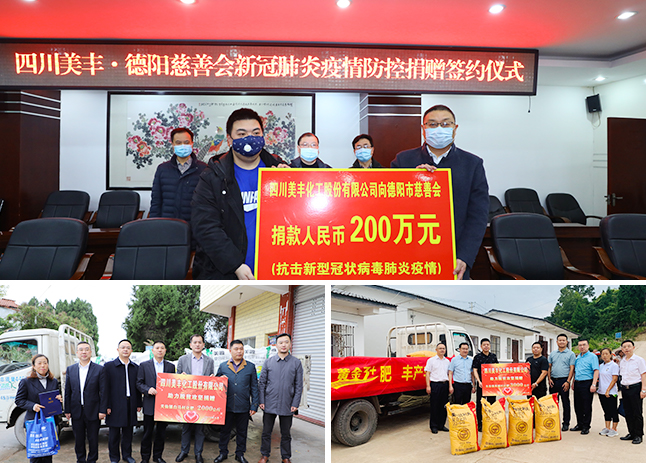 4月25日,太阳集团与德阳市教育局携手开展对口帮扶、助力乡村振兴实践活动,向中江县兴隆镇六里班村、果园村捐赠10吨复合肥。德阳市教育局党组书记、局长周建平,公司董事会秘书王东向两村捐赠爱心肥料。